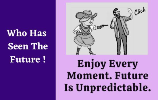 As this cartoon shows, live life to the fullest and enjoy every moment as future is unpredictable.